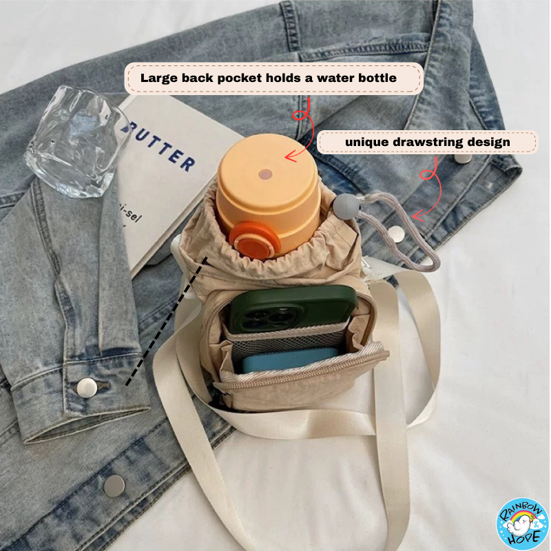 Water Bottle Bag, Bottle Puch with Drawstring Casual Sling Bag水壶手机包
